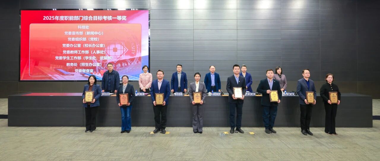会上,与会校领导为本年度综合目标考核获一等奖的职能部门、教学单位代表颁发奖牌。大会号召全校师生以先进典型为标杆,开拓创新,凝聚矢志奋斗的磅礴合力,持续提升学校学术影响力、核心竞争力与社会贡献力,为加快建设科技强国、服务国家战略需求、赋能区域高质量发展作出新的更大贡献。