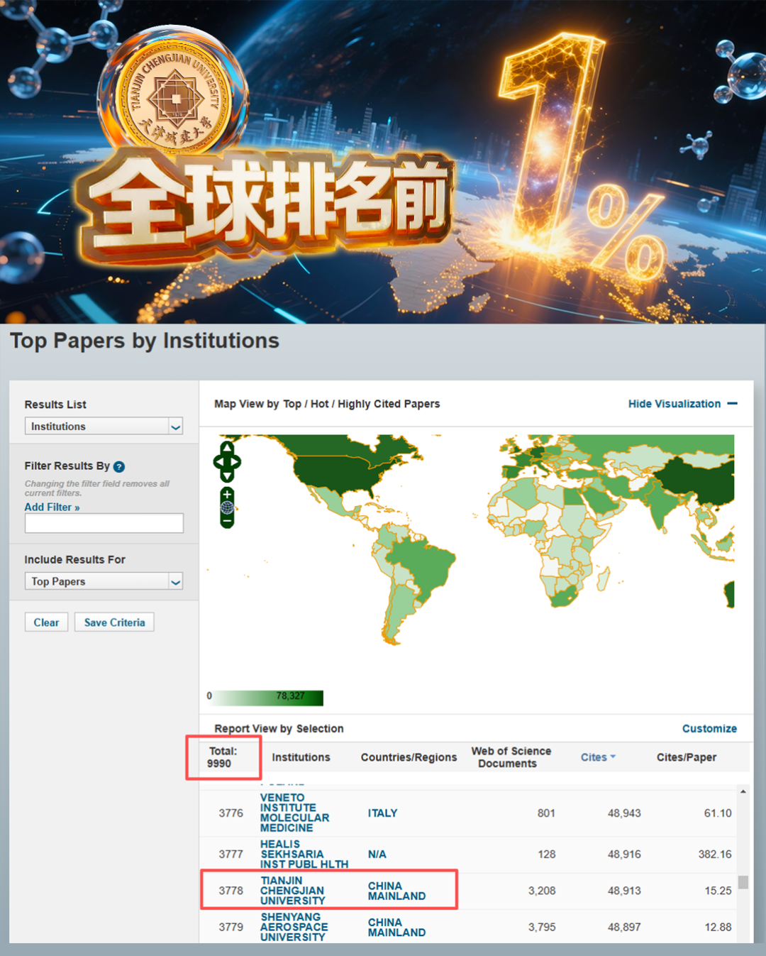 学科进入全球排名前1%