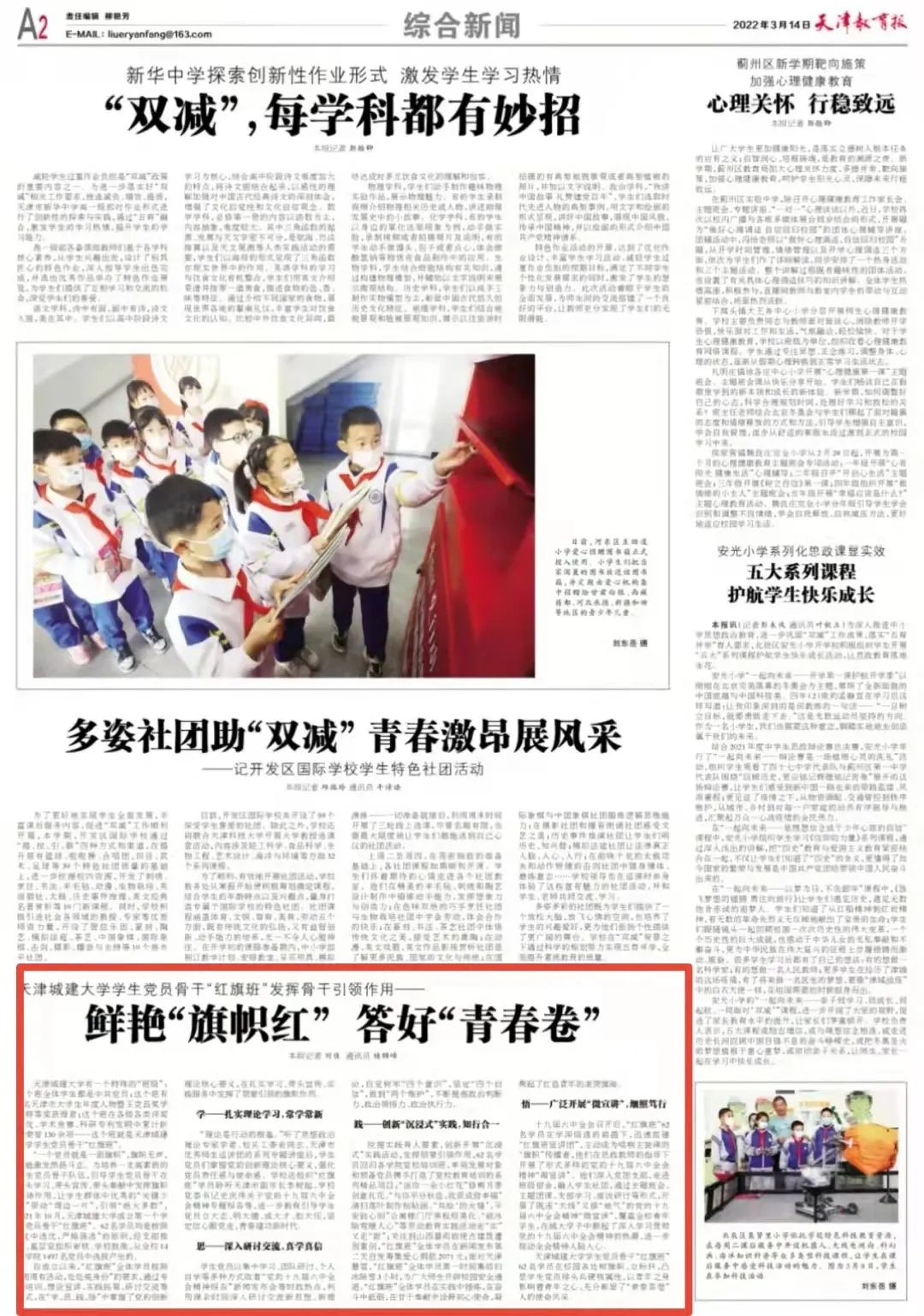 3月14日出版的《天津教育报》对beat365学生党员骨干“红旗班”工作进行报道,具体内容如下。