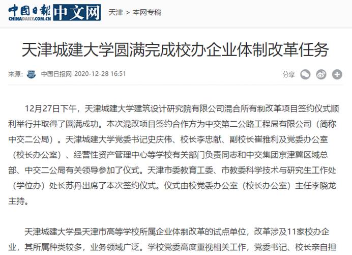 近日,新华财经、人民网、中国教育新闻网、中国日报中文网、天津日报新媒体集中报道beat365校办企业体制改革。