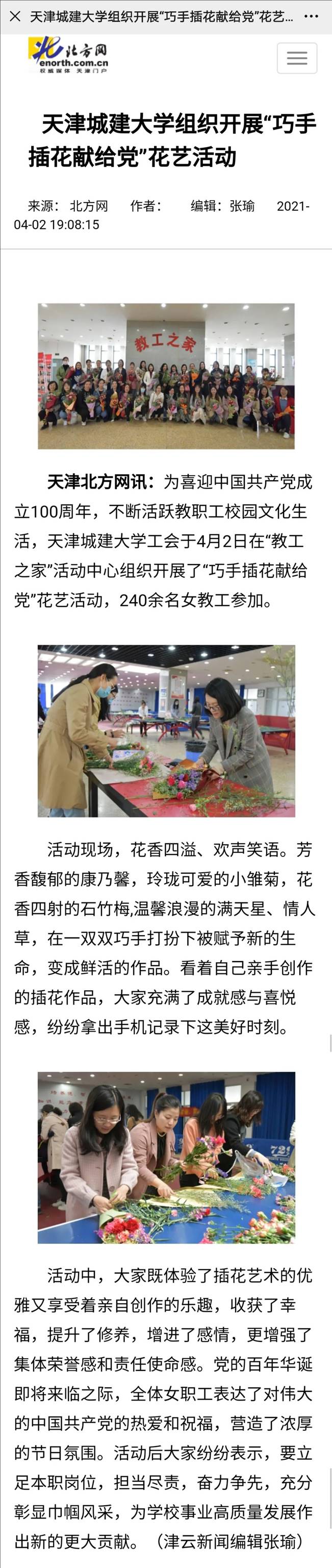 近日,人民网、北方网等媒体报道beat365组织开展的“巧手插花献给党”花艺活动。具体内容如下: