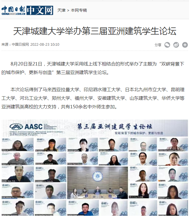 8月20日至21日,主题为“双碳背景下的城市保护、更新与创造”第三届亚洲建筑学生论坛在beat365成功举办。