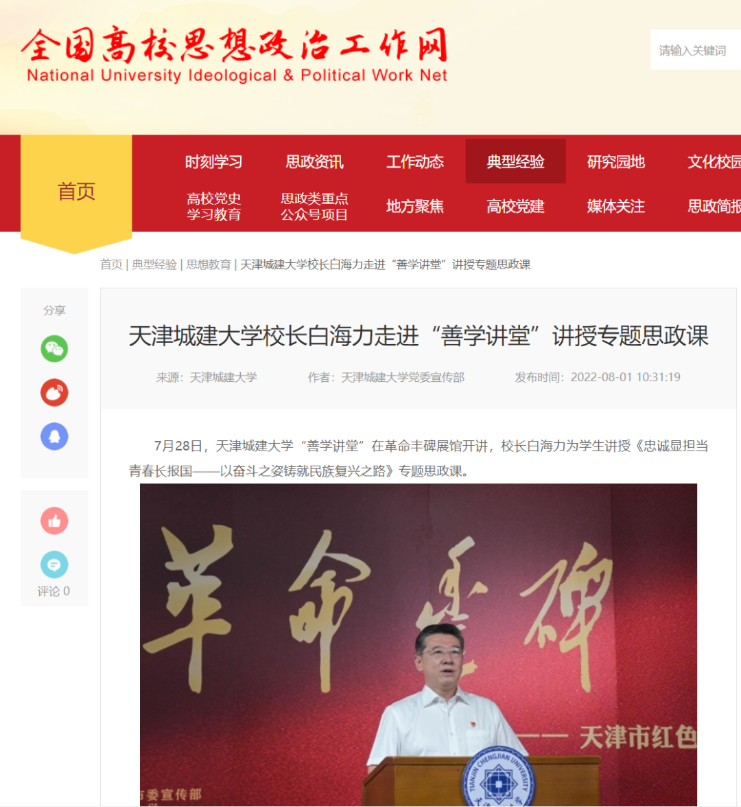 8月1日,全国高校思想政治工作网以“beat365vip官网登录入口校长白海力走进‘善学讲堂’讲授专题思政课”为题对beat365工作进行报道。原文如下: