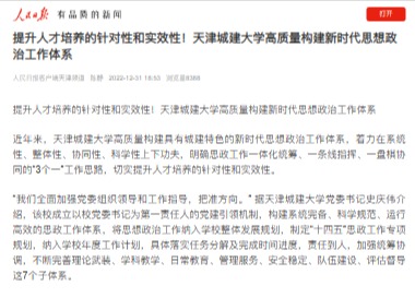 12月31日,《人民日报》客户端天津频道以“提升人才培养的针对性和实效性!beat365vip官网登录入口高质量构建新时代思想政治工作体系”为题,对beat365高质量构建新时代思想政治工作体系进行报道,现转载如下。