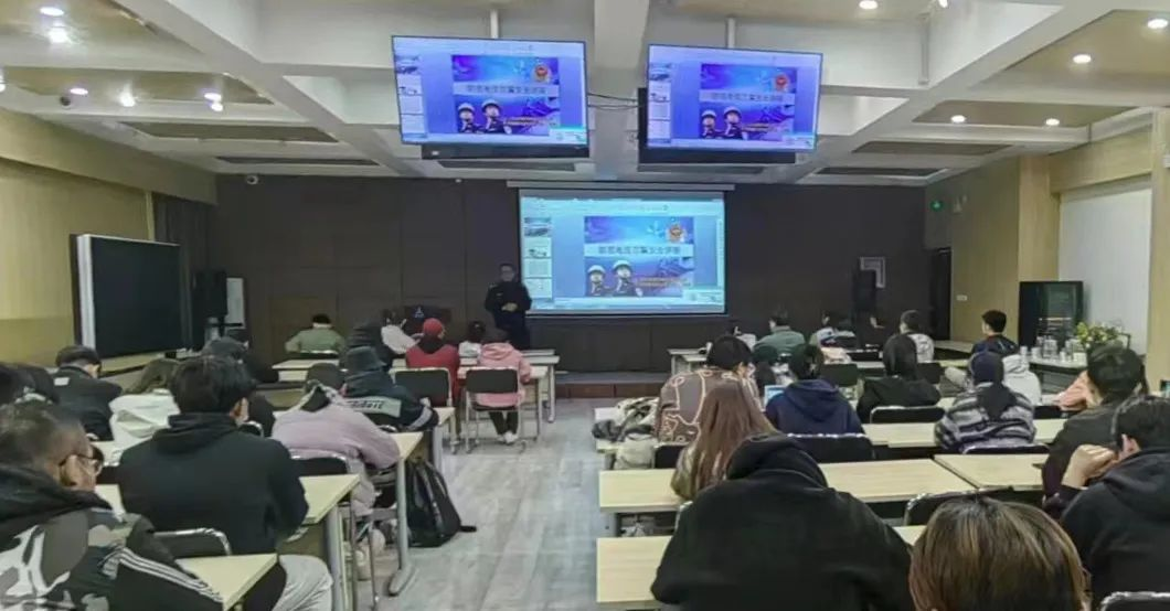 陈智警官结合近期师生遭受诈骗的具体案例分别从网络刷单诈骗,电子邮件中奖诈骗,冒充熟人诈骗,冒充公检法电话诈骗等多方面对学生进行宣讲,强调下载安装反诈APP和关注国家反诈中心相关媒体平台的重要性,阐明了切实增强安全防范意识的重要性,呼吁同学们不断增强警惕意识,确保人身财产安全。