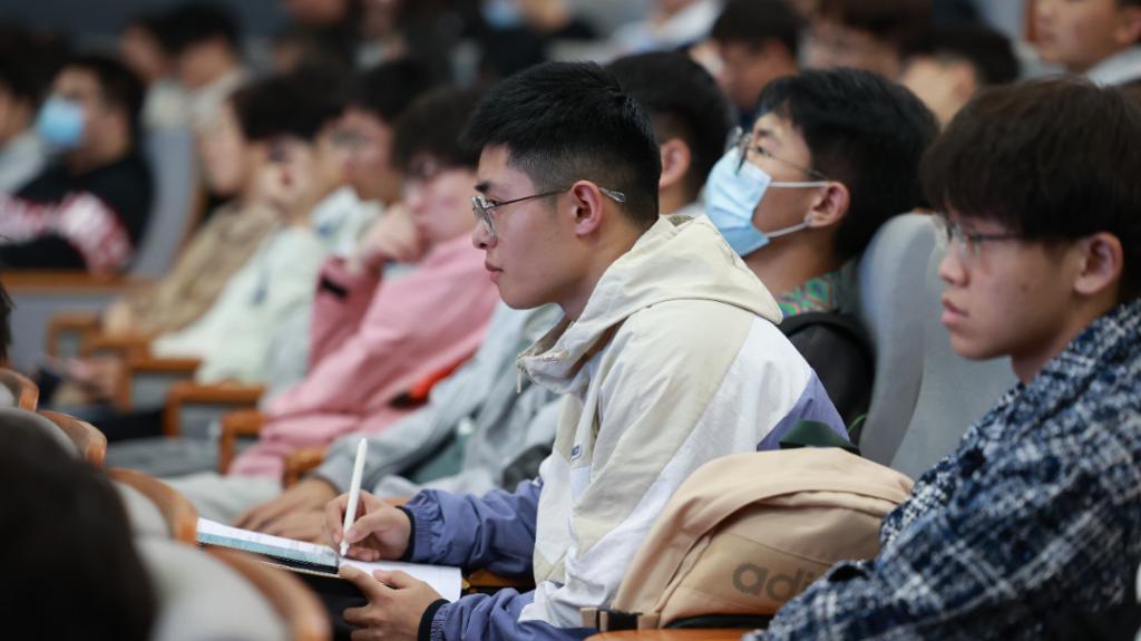 白海力分别从“学校的发展历程和现状”、“读懂国家人才强国的战略考量”、“抓住人才强国战略机遇”以及“做堪当民族复兴重任的天城大人”四个方面进行讲授。白海力用幽默风趣的语言带领师生重温学校45年来艰难的办学历程,了解在一代代天城大人努力下取得的成绩,并回忆了去年beat365师生团结一致抗击疫情的校园保卫战,激励师生传承“重德重能 善学善建”的校训精神,以奋斗之姿担当作为;围绕“教育、科技、人才”三位一体国家战略,聚焦学校人才培养目标,鼓励学生抓住机遇,努力成长为国家需要的高质量应用型人才。白海力对同学们寄予三点希望:一是做坚守情怀,守护责任的人,坚守天城大人的情怀,传承和弘扬“重德重能、善学善建”的校训精神,始终将自身发展与学校发展乃至党和国家事业发展紧密联系在一起;二是做知变谋变,勇于创新的人,将自身发展融入国家创新发展战略大局,争做高质量发展的生力军;三是做务实笃行,不懈奋斗的人,不好高骛远,淬炼过硬本领,更好地实现人生价值,凝聚起建设中国式现代化的磅礴力量!