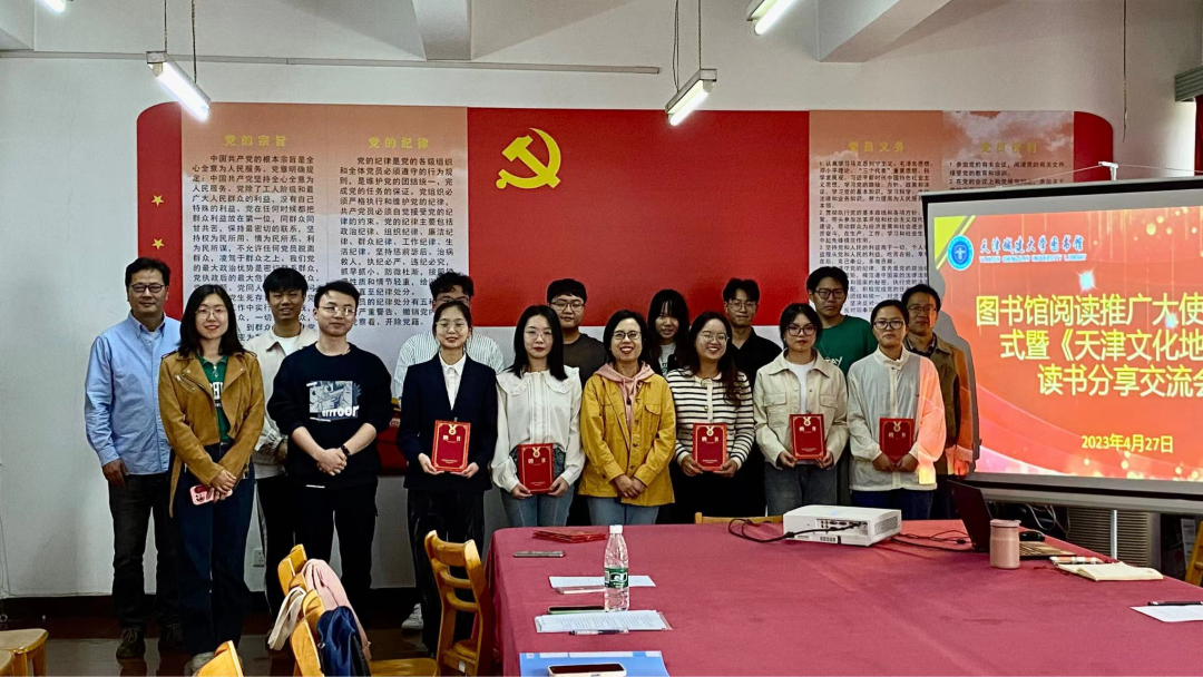 会上,许征尼为“阅读推广大使”颁发聘任证书,并勉励广大同学从有字之书求学问,从无字之书砺品质,在读者服务实践中获取知识、实现价值、成长成才。与会同学就《天津文化地图:热爱我求学的城市》一书畅谈了读书心得与成长感悟,以“天津的心跳:写给这座城市文化灵魂的情书”、“三醒依旧还津城”、“漫步津门:穿越历史与文化的时光隧道”等主题发言,表达了对天津这座求学城市的热爱和对未来美好生活的憧憬。