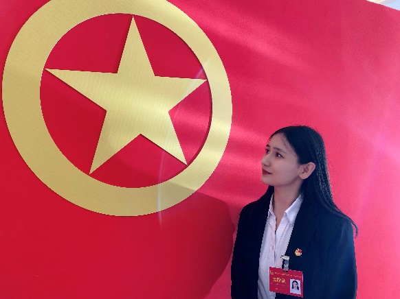 “参加大会使命光荣,责任重大,大会报告为我们青年发展把航定向”。经过团组织层层推荐,她当选为共青团天津市第十五次团代会代表,会后在不断宣传、落实会议精神,传递党对青年的亲切关怀,团结带领广大青年听党话跟党走,让红色理念熠熠在日常建设当中,在基层宣讲中传播青年之声,在一线实践中服务群众。