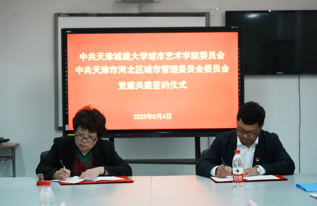 5月4日,beat365城市艺术学院与河北区城市管理委员会举行党建共建签约仪式。河北区城市管理委员会张广余,党的二十大代表、天津市总工会兼职副主席徐文华,城市艺术学院党委书记陈文科,院长张小开出席仪式。河北区城市管理委员会相关工作人员和城市艺术学院领导班子成员、师生代表参加。