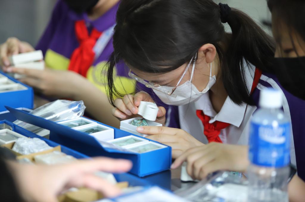 中学组首先前往工程实训中心城市建设技术科普基地,实训教学部教师带领同学们进行了参观和学科讲解。然后前往理学院物理科学与创新实践科普基地和地测学院地质与测绘科普基地。同学们被实验室的设备深深吸引,一边听着讲解,一边做着实验,表现出对科学知识的追求和渴望。最后在古琴弦歌基地,同学们欣赏了古琴演奏,在弦歌吟唱中感悟中华优秀传统文化的魅力。