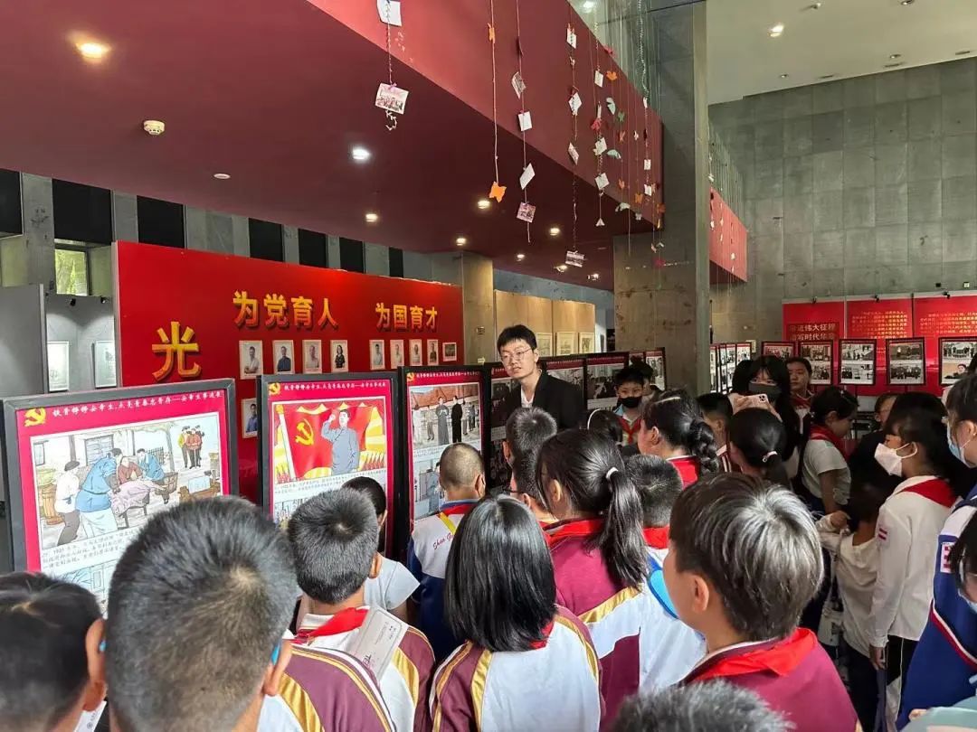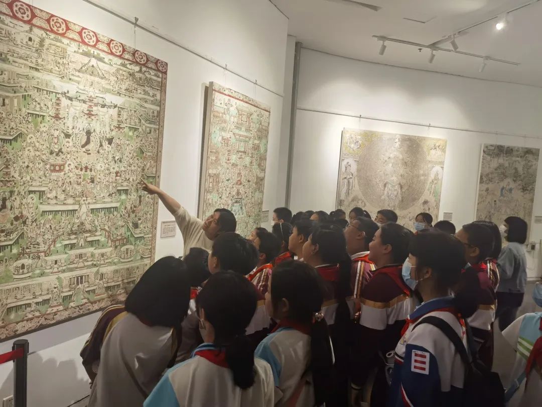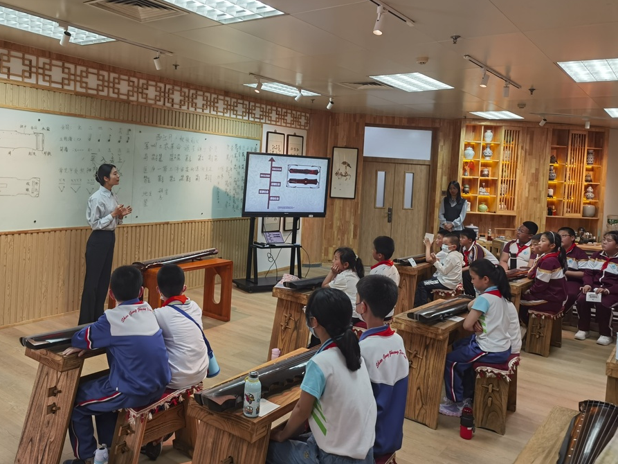 随后,学工部老师分别带队开展了小学和中学两条线路的研学活动。小学组先后前往古琴弦歌基地、革命丰碑展馆和城市艺术科普基地参观,孩子们认真聆听老师的讲解,仔细观看每一幅展图、每一件展品,踊跃抢答老师提问,现场气氛十分活跃,同学们在沉浸式体验中感知艺术魅力,感悟革命精神,增强了文化自信心和自豪感。