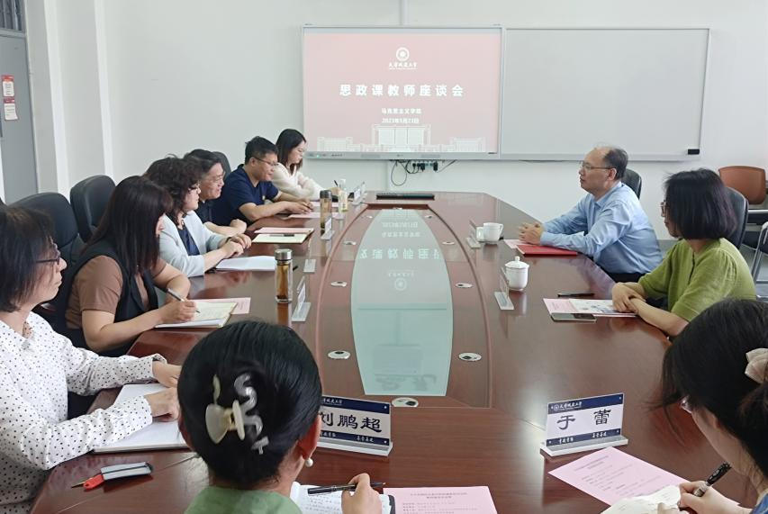 在座谈环节,思政课教师代表畅谈自己在思政课教学、科学研究、社会服务等方面的收获和体会,马克思主义学院领导班子成员分别围绕教学、科研、学科建设、师资队伍建设等方面进行了工作汇报,并表示要在教学质量提升、实践教学探索、师资队伍建设、学科建设发展上下大功夫,不断推进新时代马克思主义学院高质量发展。