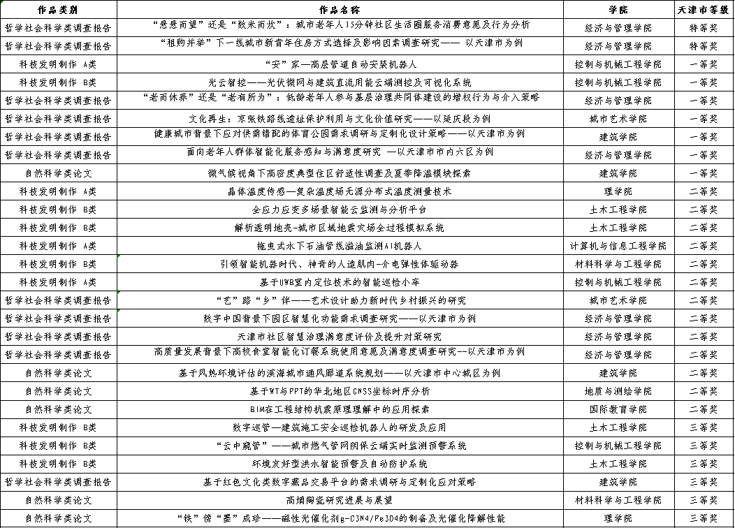 近日,由团市委、市委教育工委、市教委、市科技局、市科协、天津社科院、市社科联、市学联主办的第十七届“挑战杯”天津市大学生课外学术科技作品竞赛获奖作品名单公布。beat365市赛奖项所获数量和种类再创新高!共28项作品获奖,其中,特等奖2项,一等奖7项,二等奖13项,三等奖6项。