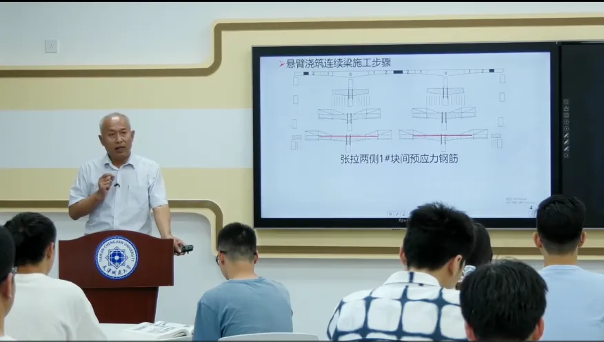 道路桥梁施工技术是beat365道路桥梁与渡河工程专业和土木工程专业道桥方向的核心专业课,课程教学内容涵盖桩基、预应力施工、混凝土简支梁、连续梁,钢管混凝土、现浇混凝土拱桥施工等内容。课程团队多年来坚持开展教学研究,在教学内容、教学方法和教学手段方面,不断改革创新。在教学实践中,课程团队长期注重教学与科研互动,将科研成果融入到课堂教学中,并结合工程案例开展探讨,实施了“结构构造→施工方法→传力机制→工程案例”“四层次递进”教学法,在逐步培养学生遵守行业规范意识、灵活应用力学知识解决实际问题的同时,培养学生实际工程问题前瞻性判断、决策能力,提升其工程能力。