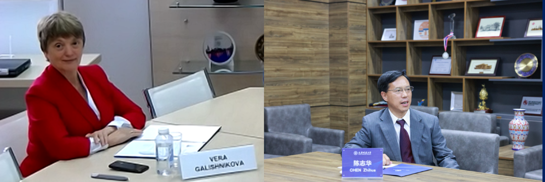 陈志华与Vera Galishnikova分别介绍了两校国际交流概况,双方均表示希望两校以合作协议为基础,探索多种形式的合作项目,积极推动学生双向流动与高层次人才互访,不断深化合作伙伴关系。
