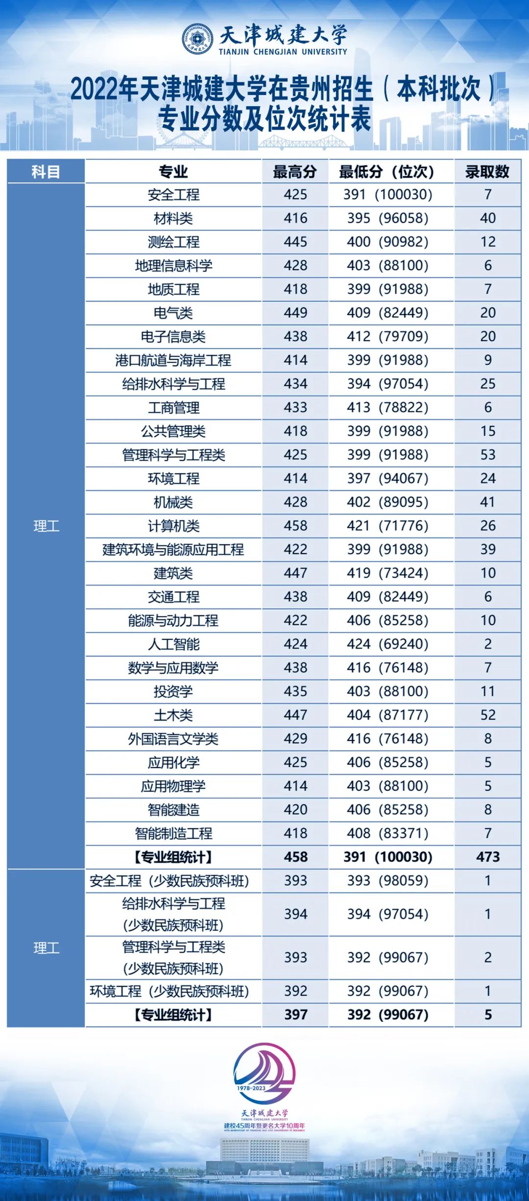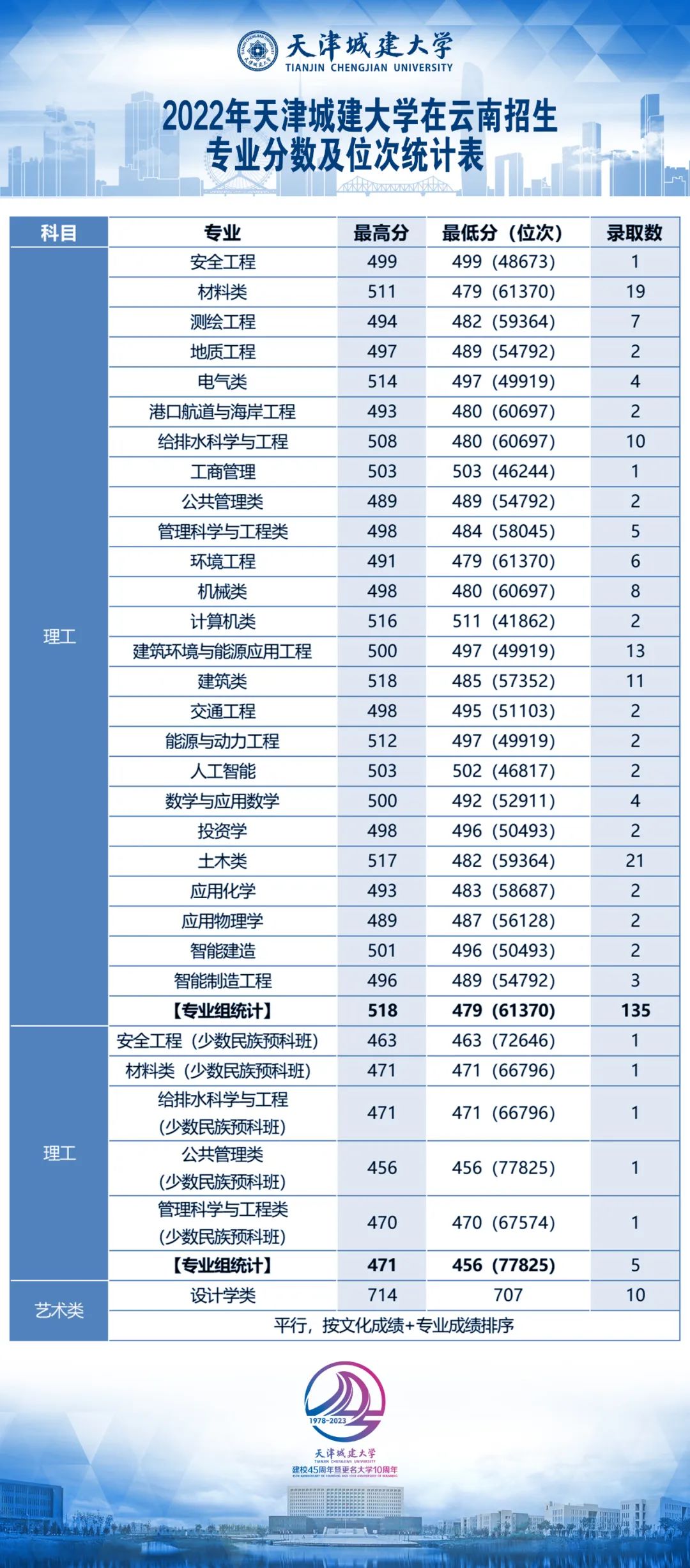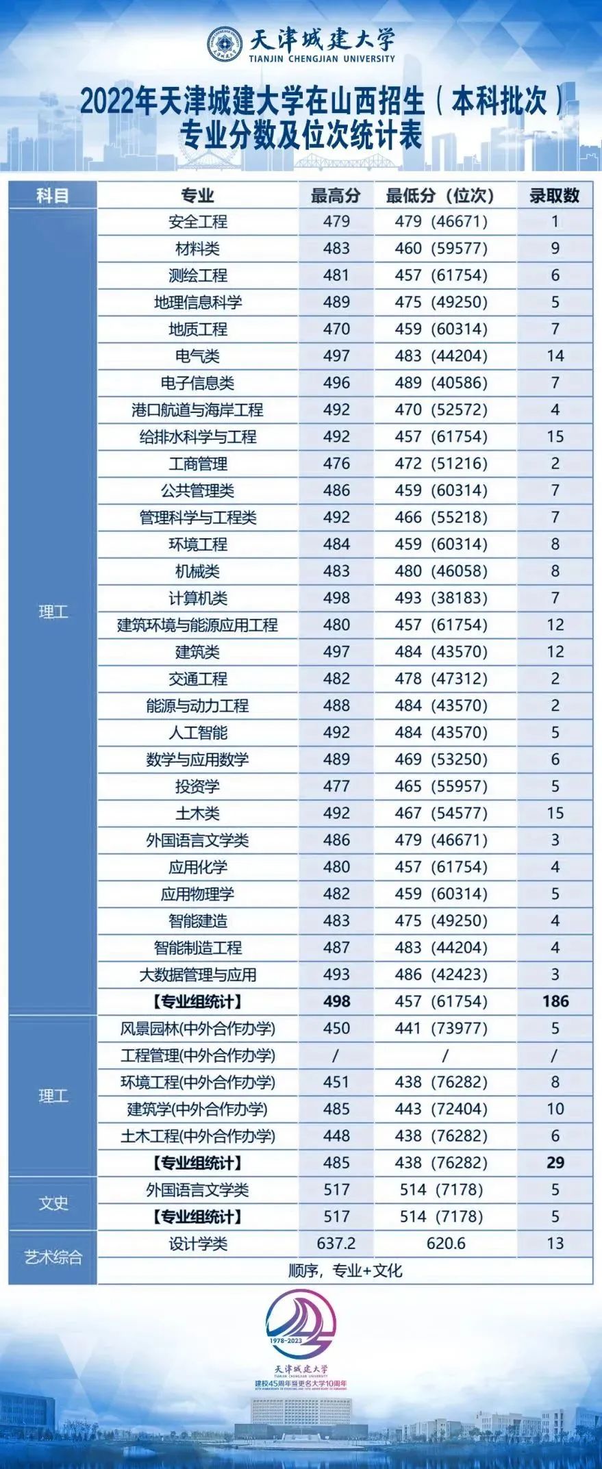 2023年有57个本科招生专业,其中10个国家级一流专业建设点、14个天津市一流专业建设点,3个新工科专业,2个新兴交叉学科专业,1个国家级特色专业,1个国家级、2个天津市综合改革试点专业,7个天津市品牌专业建设项目和5个天津市战略性新兴产业相关专业建设项目,8个天津市优势特色专业和12个天津市应用型专业;6个专业通过住建部本科专业评估(认证),16个专业实行了“大类招生+专业分流”改革。