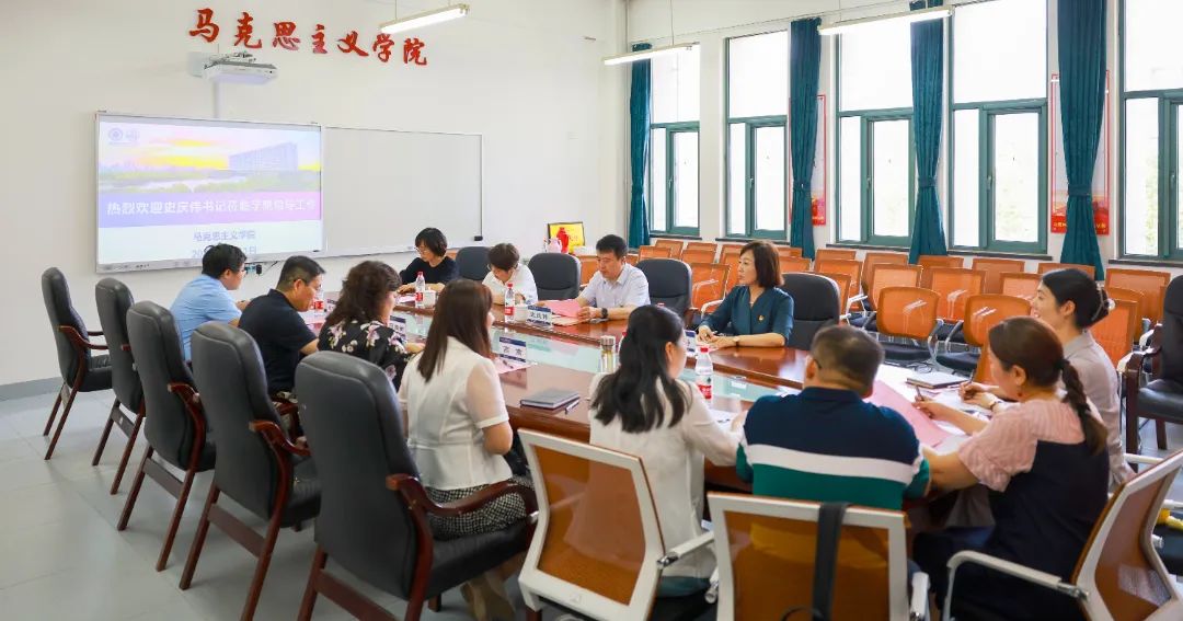 校党委常委、宣传部部长杨静,教务处副处长苑宏英,环境学院党委副书记沈杰然陪同调研,马克思主义学院班子成员和部分教师代表参加会议。