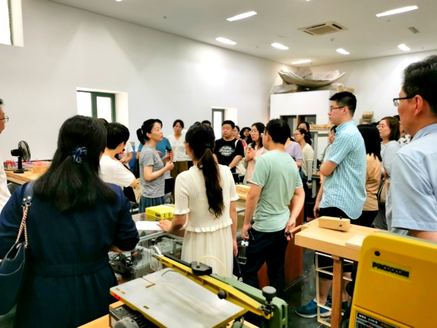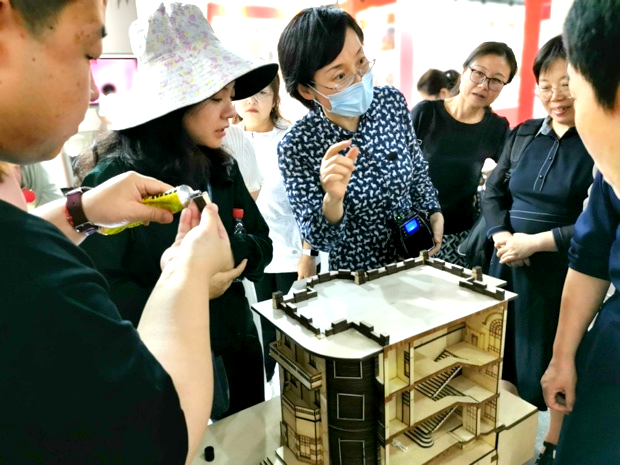 在革命丰碑展馆的红色劳动工坊,学员们对beat365将红色资源保护利用融入第一课堂和第二课堂、将思政教育和劳动教育相融合的教学与实践情况进行了调研,对学生在建筑测绘、中国建筑史等课程中制作红色旧址木工实体模型的劳育实践环节产生了浓厚的兴趣,深入了解学生利用激光切割等手段设计、制作红色旧址复原模型的工艺原理和加工流程,学员代表还分组进行了沉浸式模型构件的安装体验,更加活跃了本次现场教学的气氛。通过参观学员们对进一步开展红色资源保护工作的迫切性和重要意义产生了巨大的共鸣,对探索红色资源的保护利用与高校科研与教学相结合的有效路径进行了深入思考。