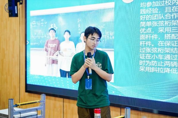 本届竞赛题目是以“撞击荷载下变参数两跨四车道桥梁结构设计与制作”为基础,以承受竖向静载和移动荷载的桥梁结构为对象,通过结构模型设计与加载试验,探讨多工况荷载条件下桥梁结构体系的安全性和可靠性。通过现场抽取赛题中部分待定参数,赋予赛题更多的灵活性,强调对未来卓越工程师综合能力的全面要求。经过各参赛队伍激烈角逐,评委会对21支参赛队伍作品的外观、现场答辩、加载试验等环节综合评分,共评出一等奖5项、二等奖11项、三等奖5项。