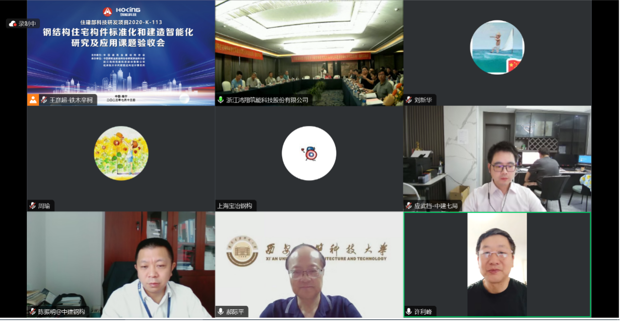 参加会议的人员有:中国建筑金属结构协会会长、西安建筑科技大学郝际平教授,中国建筑金属结构协会副秘书长、建筑钢结构分会孙晓彦会长、常务副会长胡育科、副会长董春、周瑜,杭州铁木辛柯建筑结构设计事务所总经理景亭、总工程师王彦超,浙江鸿翔钢结构有限公司副总裁戴高峰、总经理翟俊峰、副总裁许斌,唐山开元自动焊接装备有限公司副总经理许志明、刘斌,中建七局(上海)有限公司科技部主任应武挡、山西潇河建筑产业有限公司崔宸铭、杭州艾构软件有限公司总经理周署宾、副总经理李浩,安徽工布智造工业科技有限公司总经理王继文,海南浙大钢构有限公司副总经理陈炜、总工程师刘新华,上海宝冶集团有限公司首席专家陈桥生,中建二局安装工程有限公司陈伟、汪东卓等课题承担单位代表通过线上或线下参加了会议。
