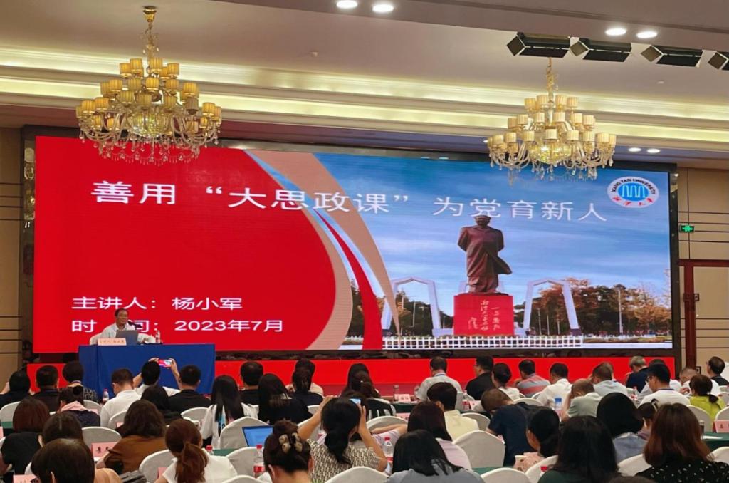 在理论学习环节,湘潭大学副校长刘建平教授以《红色文化与理想信念教育》为题做报告,以湘籍革命家为切入点,深入浅出地阐释了红色文化中所蕴含的强大理想信念,提出了新时代将红色文化融入大学生思想政治教育的具体实践路径。湘潭大学马克思主义学院副院长杨小军教授以《善用“大思政课”为党育新人》为题做报告,从何为、为何、如何三方面阐述了新时代建好、建强“大思政课”的必要性、紧迫性,并以“大思政课”建设的“湘潭大学模式”为例,分享在实践中探索建设“大思政课”的宝贵经验。通过理论学习,全体教师对不断创新教学实践,实现“教、学、思、用、研”的互动转化,把思政课讲深、讲透、讲活有了更深刻的思考和感悟。