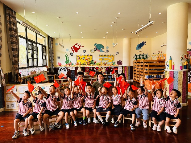 与幼儿园孩子们合影