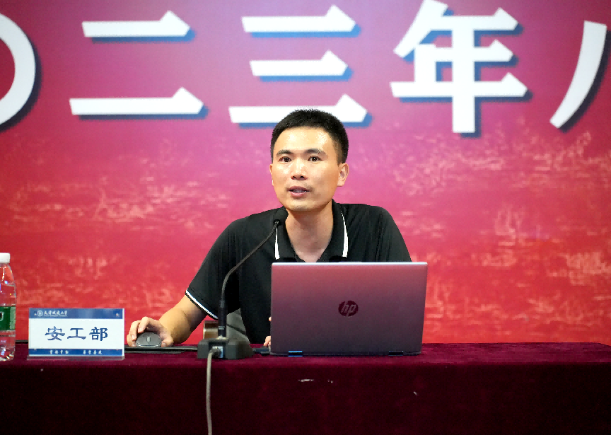 党委学工部王宁为全体新生作宿舍安全专题讲座,向新生细致讲解了宿舍生活应该注意的安全细节,提升了新生的宿舍安全意识和自我保护能力,希望同学们今后用高标准、严要求,落实好学校的各项规定,共建安全宿舍和文明校园,扎实铸牢安全思想屏障。