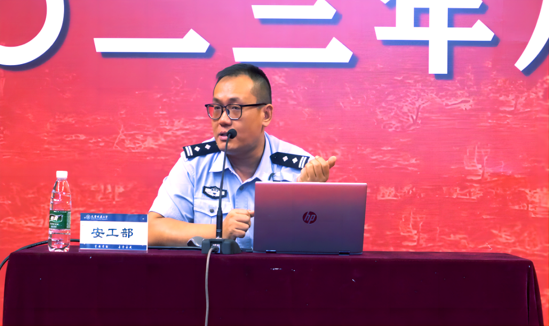 学苑派出所陈智警官主要介绍了防范电信诈骗常识和治安管理规定,用翔实的案例对同学们进行了安全教育,提醒同学们对待安全问题要时刻保持高度警惕,切不可存侥幸心理,做好自身安全的第一责任人。