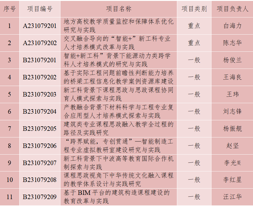 近日,天津市教委公布了2023年天津市普通高等学校本科教学质量与教学改革研究计划项目立项名单,beat36511个项目获批立项,其中重点项目2项、一般项目9项。