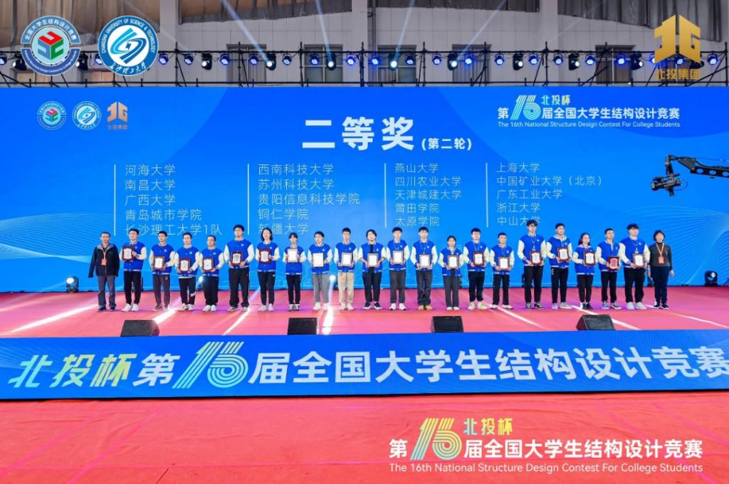据悉,全国大学生结构设计竞赛是土木领域级别最高、影响最大的综合性学科竞赛,被誉为“土木皇冠上最璀璨的明珠”。本次大赛由中国高等教育学会工程教育专业委员会、高等学校土木工程学科专业指导委员会、中国土木工程学会教育工作委员会和教育部科学技术委员会环境与土木水利学部共同主办,来自同济大学、东南大学、清华大学、浙江大学等高校的119支队伍参赛。