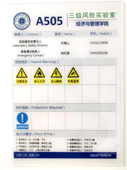 经济与管理学院时刻以党建为引领,严格按照学校“1-3-3-5”管理模式开展实验室安全管理工作,强化“安全是学校一切工作开展的底线”的思维,实验中心安全建设是经济与管理学院构建教学科研“大安全”格局的重中之重,不断完善和健全安全责任制,为师生全力营造安全、健康、高效的学习、工作环境。