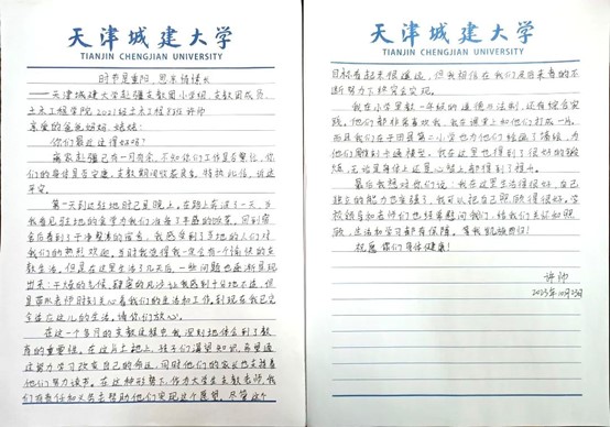 落此笔时,距离返程仅剩66天,边疆、昆仑、驻地、馕饼、烤肉、普通话、基础教育,这些原本陌生的词汇充斥在我的生活里,还没有准备好告别就已经开始不舍。我的天城大,请您放心,我会照顾好孩子们!我们会像边疆的一颗颗红柳、一株株雪莲花一样,在新疆广袤的土地上,坚韧不拔、甘于吃苦、辛勤耕耘、默默奉献,在基层和人民中建功立业,让我的“青春的誓言”踏实落地,在实现中国梦的伟大实践中书写城建学子的精彩篇章!