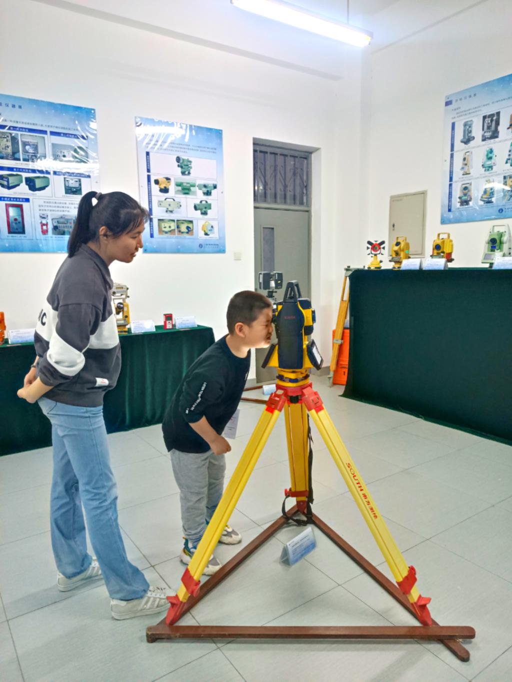 在地质与测绘科普基地,各位小朋友通过手标本和薄片观察,了解地球的岩石组成,体验地质相关工作的内容;同时在科普基地老师的指导下,小朋友亲手操作,完成对全站仪、水准仪、经纬仪等测绘仪器设备体验式教育活动。