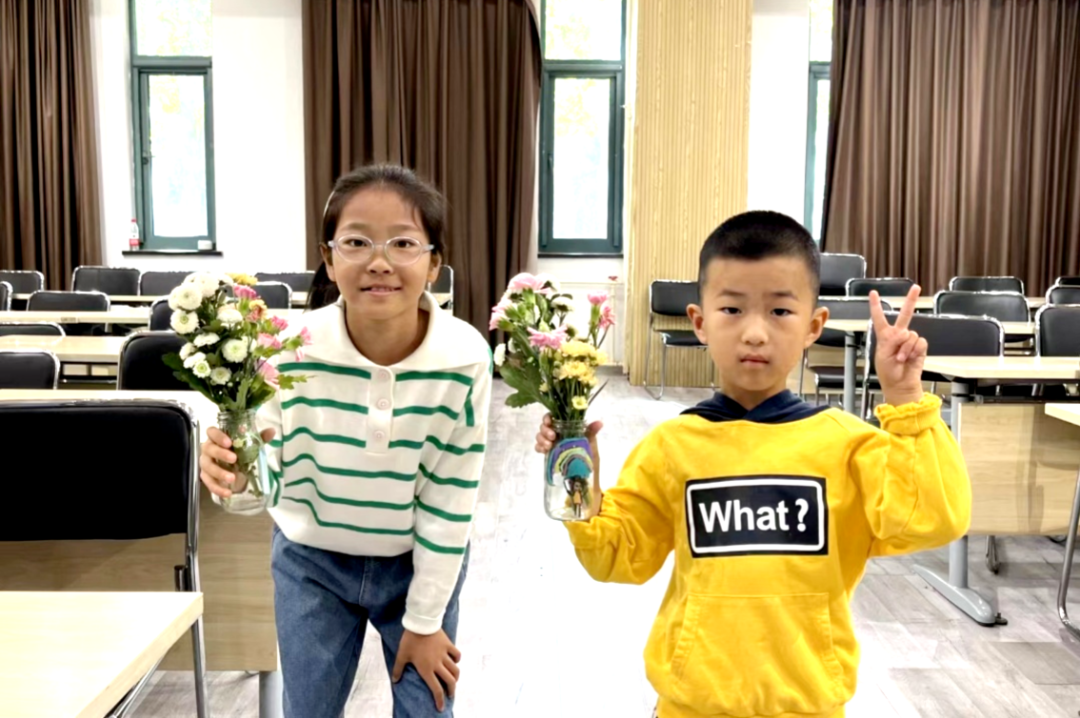在建筑减碳科普基地,小朋友们根据老师教授的插花方法和美学原理,耐心细致地完成着各自的插花创作。他们通过对花瓶的装饰和花朵的搭配,创造出了灵动而有生命力的作品。