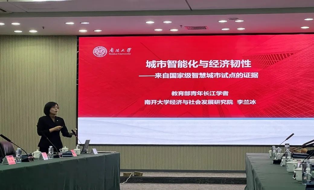 南开大学经济与社会发展研究院李兰冰教授以《城市智能化与经济韧性——来自国家级智慧城市试点的证据》为题,研判中国区域经济研究新形势,强调中国区域经济研究新趋势是将有组织的科研与自主学术探索相结合,采用精细化量化和原创性思想并行的研究范式,以需求驱动型创新为主要导向,并借助社会科学实验室的技术平台进行研究。此外,以理论机制-影响效应-机制识别为主线,构建城市智能化建设对经济韧性影响的系统研究框架,为政府探索宏观经济韧性路径提供有力支撑。