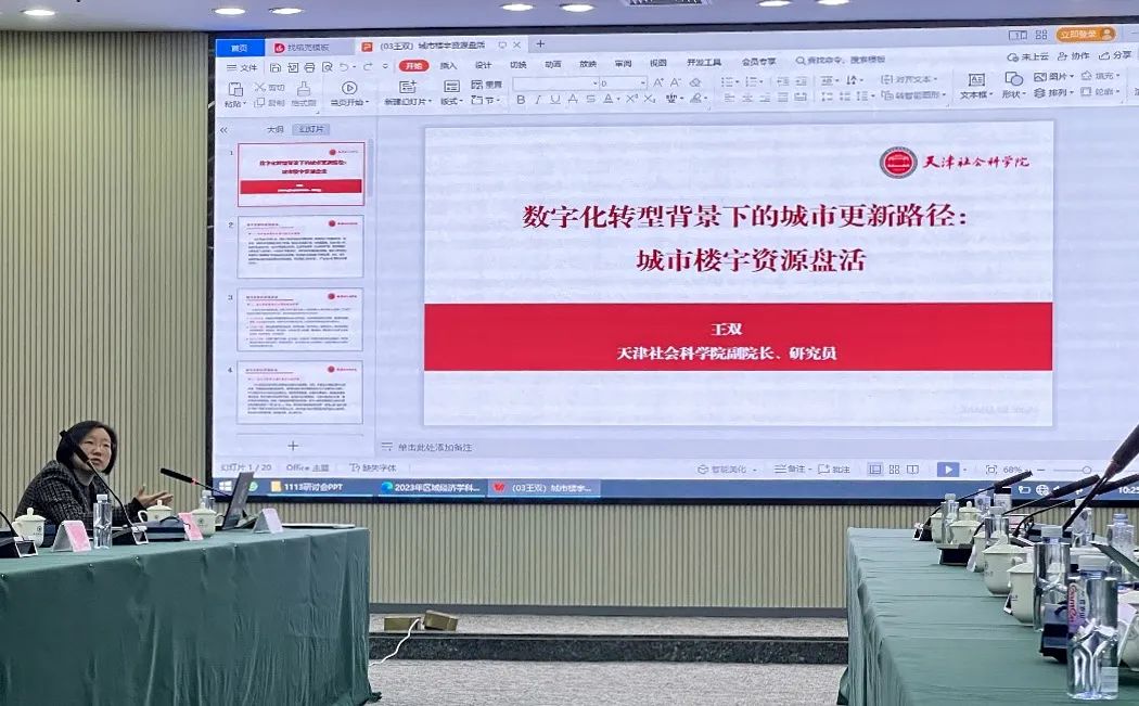 天津社会科学院副院长、研究员王双以《数字化转型背景下的城市更新路径:城市楼宇资源盘活》为题,从城市更新的逻辑起点为中心入手,指出城市更新中混改土地流转难、启动资金获取难、利益主体协同难、产业生态集聚难等亟待解决的问题并提出对策建议。最后王双副院长提出城市楼宇标准化和智慧化建设,即在智能楼宇的需求基础上,利用智慧化的手段或数字化治理的手段解决楼宇开发或楼宇生态圈建设的问题。