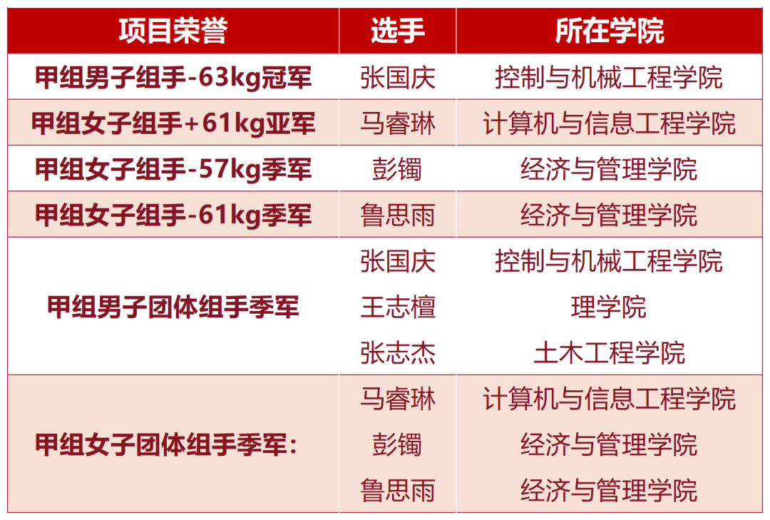 成功的背后,是不懈的奋斗和坚持,是对目标的执着追求和不懈努力。为备战此次比赛,赛前师生们利用每天中午和晚上休息的时间积极训练,研究制定比赛战术和打法。备战期间有4名主力队员由于客观原因不能参赛,严重影响了其他队员的训练情绪,教练员一边做思想工作一边激发队员的斗志和为校争光的决心,在共同努力下,队员们振奋士气登上赛场。队长张国庆赛前一直带伤训练,比赛中他忍着疼痛固定包扎脚踝,毅然决然地走上赛场,不断调整心态,一场一场去拼,一场一场赢,决赛中,因对方犯规导致他受伤出血,简单处理后继续比赛,最终凭借强大的意志力和扎实的技战术赢下了比赛,成功蝉联本级别冠军。