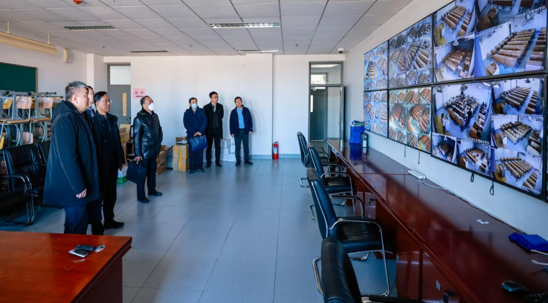 为贯彻落实教育部2024年全国硕士研究生招生考试安全工作会议精神,进一步加强招生单位自命题管理,完善考试安全管理制度,强化重点环节监管,扎实做好考前各项准备工作,确保2024 年研考安全平稳有序进行,近日,天津市教育招生考试院党委委员、副书记孙全胜、社考处处长林杰、保障处处长王全会一行来beat365检查2024年全国硕士研究生招生考试自命题及考前准备工作。