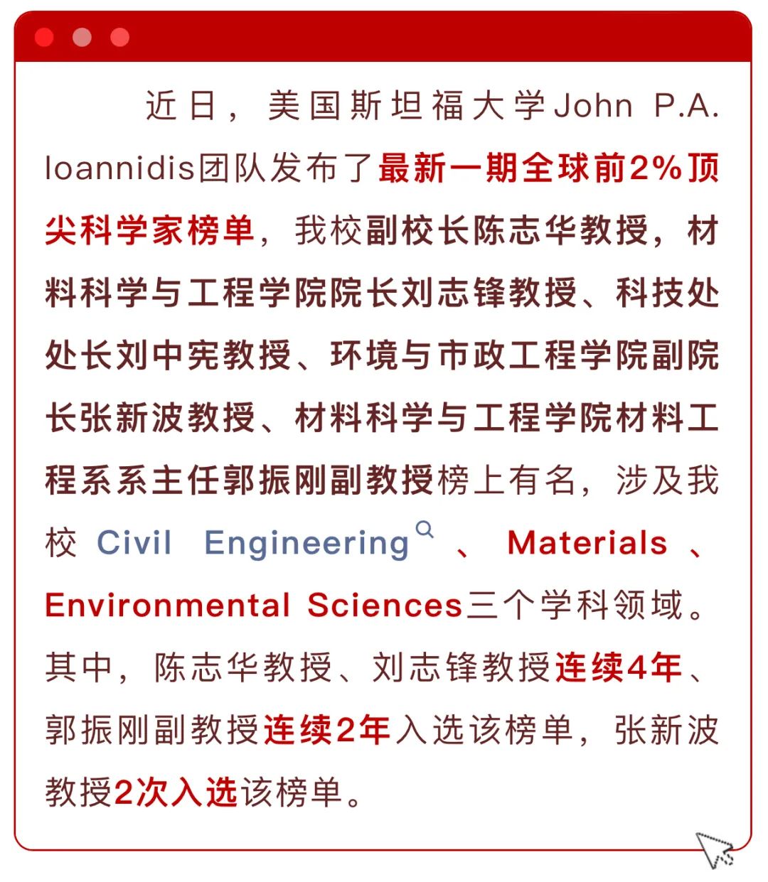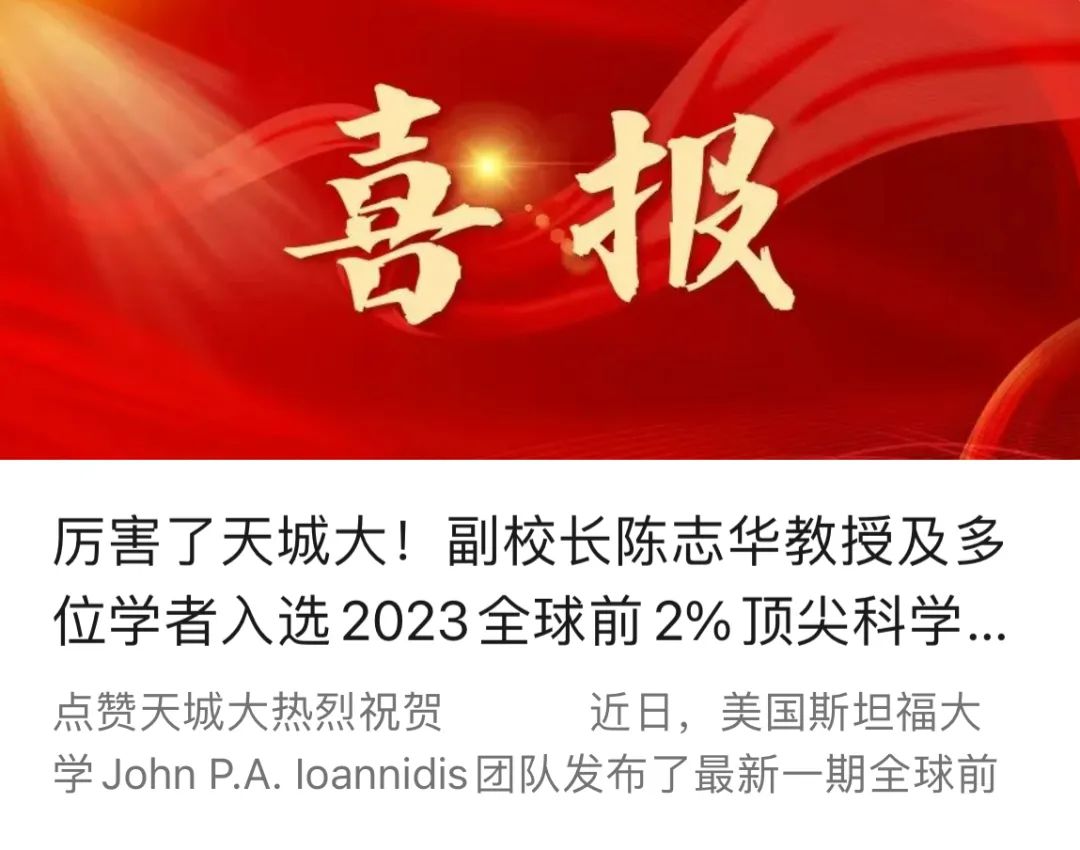 多位学者入选2023全球前2%顶尖科学家榜单