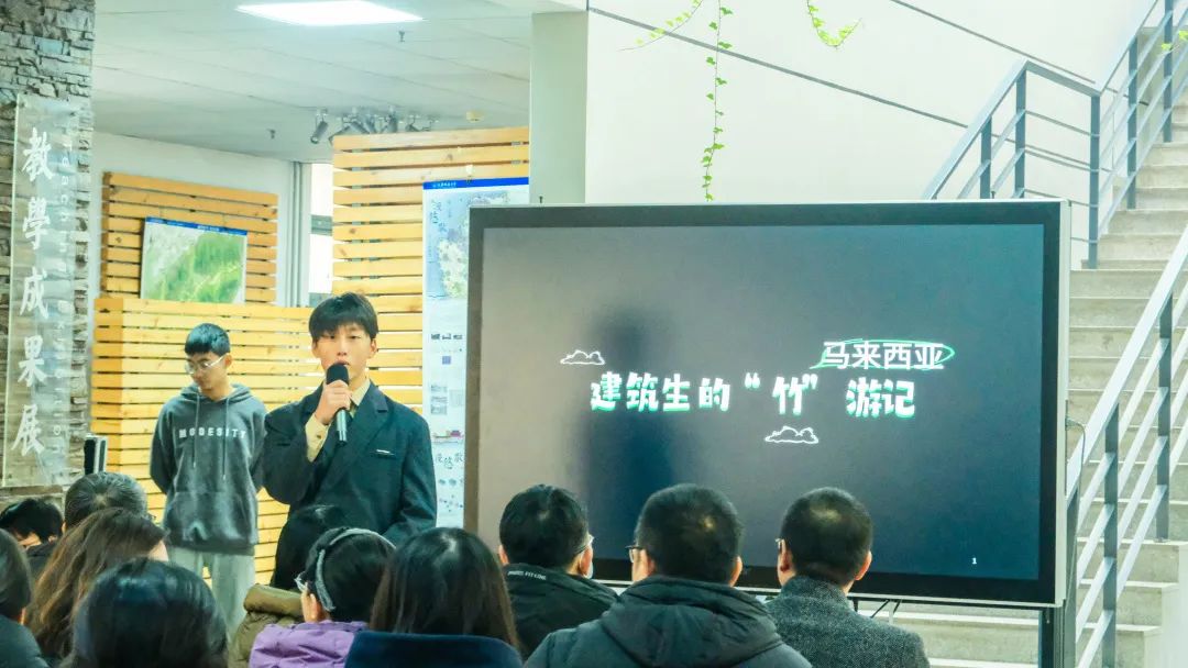 活动通过播放视频、PPT汇报、实体模型展示、节点模型展示等形式回顾了beat365团队设计作品“竹厦”诞生的全流程,生动的展现了每一个环节。期间,还将当时在工作营展示给外国友人的魔术表演带到了现场,展现了天城大建筑学子多才多艺的一面,将现场的气氛推向了高潮。团队成员邀请参展师生品尝了竹筒茶,为整个成果展增添了一份浓郁的竹文化气息。在互动提问环节,工作营成员分享了自己参加此次活动的感悟和收获,并向参展嘉宾送上团队成员精心设计制作的小礼物,并一起合影留念。