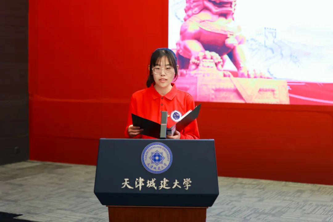 天津市青马工程第七期高校班学员、第五期“薪火班”学员代表,外国语学院郑梦璐进行发言。她首先回顾了自己与“青马”结缘的心路历程,表示通过在“薪火班”一年的学习,强化了自己的理论水平、锻炼了自己的实践能力,用自己的实际行动,讲述家乡红色故事、传播红色精神,未来“薪火班”的学员们将勠力同心、砥砺奋进,自觉成为有理想、敢担当、能吃苦、肯奋斗的新时代好青年,将“请党放心,强国有我”的铮铮誓言兑现在充满光荣和梦想的新征程上。