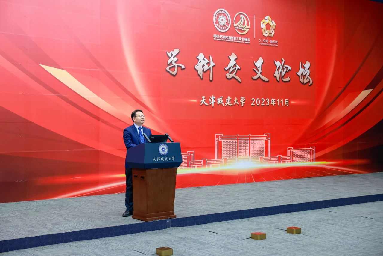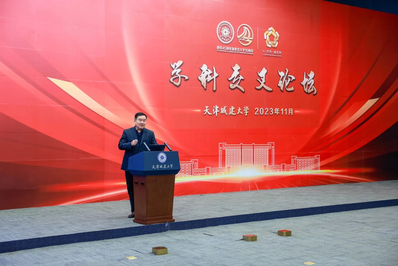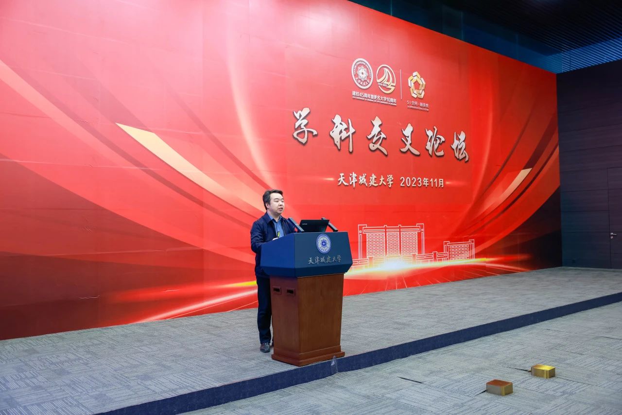 白海力详细介绍了学校整体概况、优势特色学科方向、科研平台和创新团队等,并重点阐述了学校“5I空间·融系统”的核心内涵。他表示,2023年以来,学校全面贯彻党的二十大精神和习近平总书记关于教育和科技创新的重要论述,大力推动教育、科技、人才“三位一体”协调发展,积极探索产教融合、科教融汇新路径,推出了以“5I空间·融系统”为核心理念的“城大共识”“城大行动”“城大实践”。跨学科创新研究院作为“5I空间·融系统”关键平台载体之一,着力探索实现数字化、智能化、绿色化等前沿科技赋能传统城建行业、更新改造传统学科。学校将以创新研究院建设为抓手,加快构建综合高效的跨学科基础理论研究和关键技术攻关团队,大力推动智能制造、智能建造、智能防灾减灾、智慧城市、智慧楼宇与低碳运维、新型清洁能源等重点领域优先发展,促进产业链、创新链和人才链紧密衔接,协力开展重点领域关键核心技术攻关,加快推动先进科研成果转化,以更好地服务国家、地方重大发展战略和天津市先进产业链。