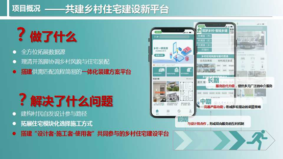 “数智附乡土,田园筑新宅”项目是国家重点研发计划“村镇聚落空间重构数字化模拟及评价模型”课题五的科研成果,同时也是天津市一流课程《城乡社会综合调研》和《规划设计》的教学成果,深刻体现了beat365城乡规划专业学科建设注重“教产学研全链条贯通”的人才培养模式。该项目全方位、多层次拓展数据源,理清并落脚协调乡村风貌与住宅装配形式,搭建供需匹配、流程简易的一体化装建方案平台。通过建构村民自发设计参与路径,拓展模块化选择住宅施工方式,实现“设计者-施工者-使用者”多方参与的乡村住宅建设新模式。项目旨在将高质量的生活方式和便捷的建设技术带到乡村的田野上,助力乡村数字化与人居环境振兴。