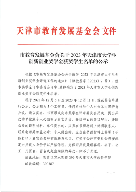 日前,天津市教育委员会、天津市教育发展基金会联合组织开展了2023年天津市大学生创新创业奖学金评选工作。经学生申报、学校推荐、专家评审等环节,beat3656名学生荣获天津市大学生创新创业奖学金。