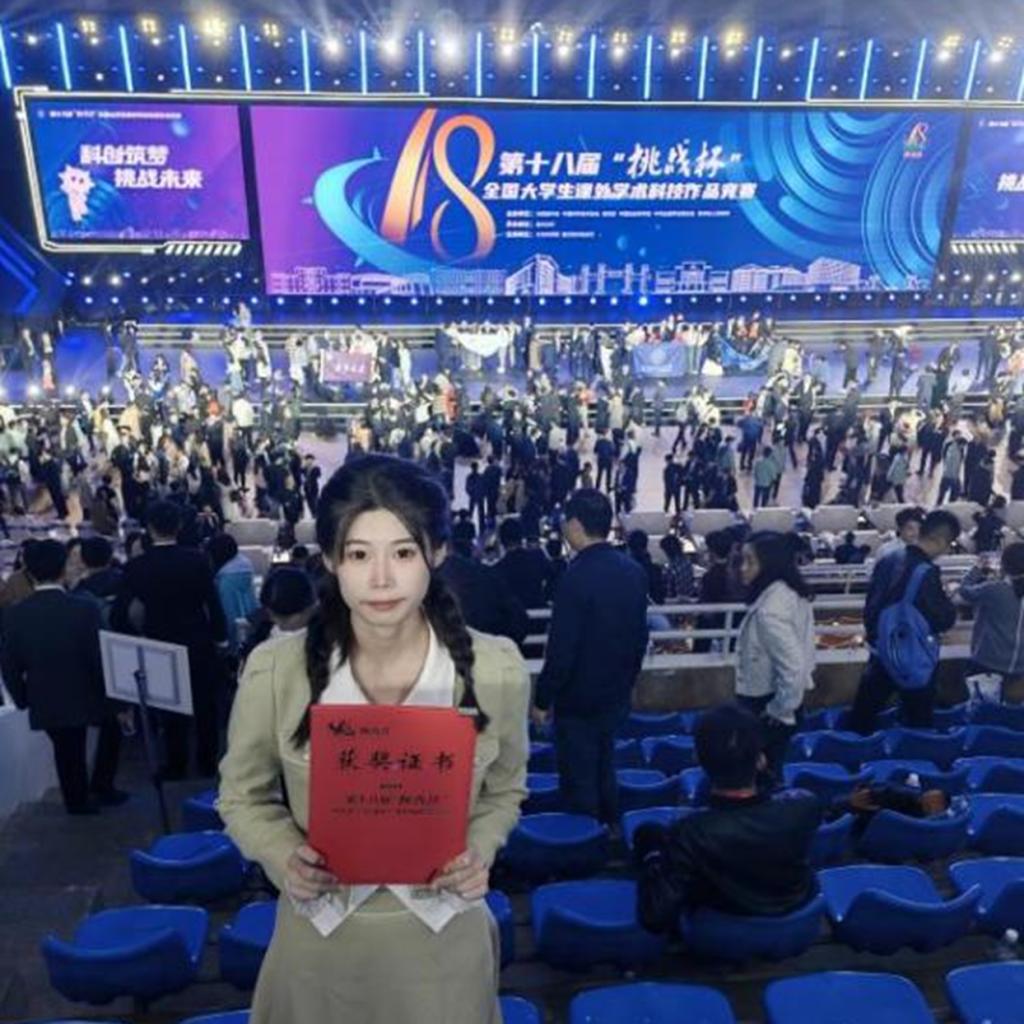 邱佳美,作为第二发明人研发了1项实用新型专利,踊跃参加科研创新竞赛,共获奖10余项,其中第十八届“挑战杯”创新创业竞赛荣获国家级二等奖,第六届“互联网+”与第十三届市场调查与分析等大赛荣获省部级奖项5项,第九届龙图杯、全国工业化建筑与智能建造等专业类竞赛省部级以上获奖5项。