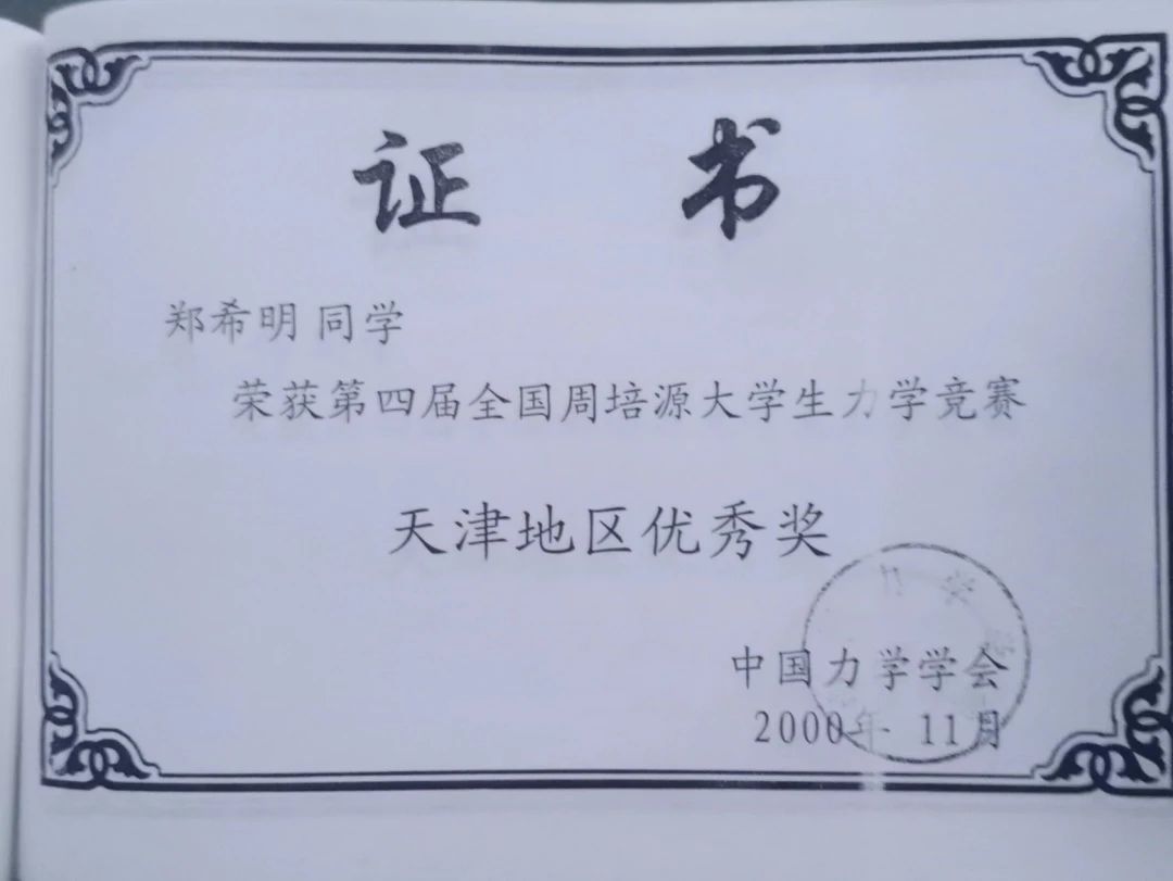 2000年,我们学校又参加了第四届全国周培源大学生力学竞赛(天津赛区),荣获天津赛区团体第一名。学校土木工程系学生郑希明、张伟同学分获天津赛区个人第一名、第二名。这次获奖在天津市力学会引起巨大反响,没有人再会说是什么偶然结果或者运气好之类了,可以说是占据了一席之地。