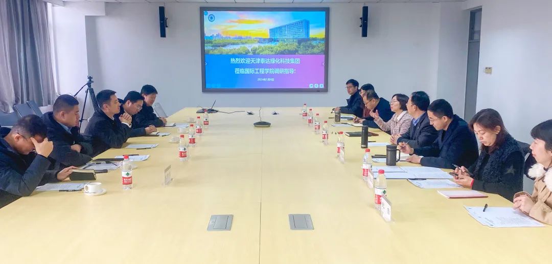 1月9日,天津泰达绿化科技集团股份有限公司常务副总经理曾威、天津泰达园林建设有限公司副总经理王磊、天津泰达园林规划设计院有限公司副总经理蒋新然、天津泰达盐碱地绿化研究中心有限公司首席专家张金龙、天津泰达绿化科技集团企业培训中心孙联军一行5人来beat365国际工程学院开展调研、座谈。国际工程学院党总支书记杨萍、院长黄凌翔,党总支副书记孔伟,副院长李光旻、谭立峰,及学院相关工作人员参加座谈。会议由黄凌翔主持。