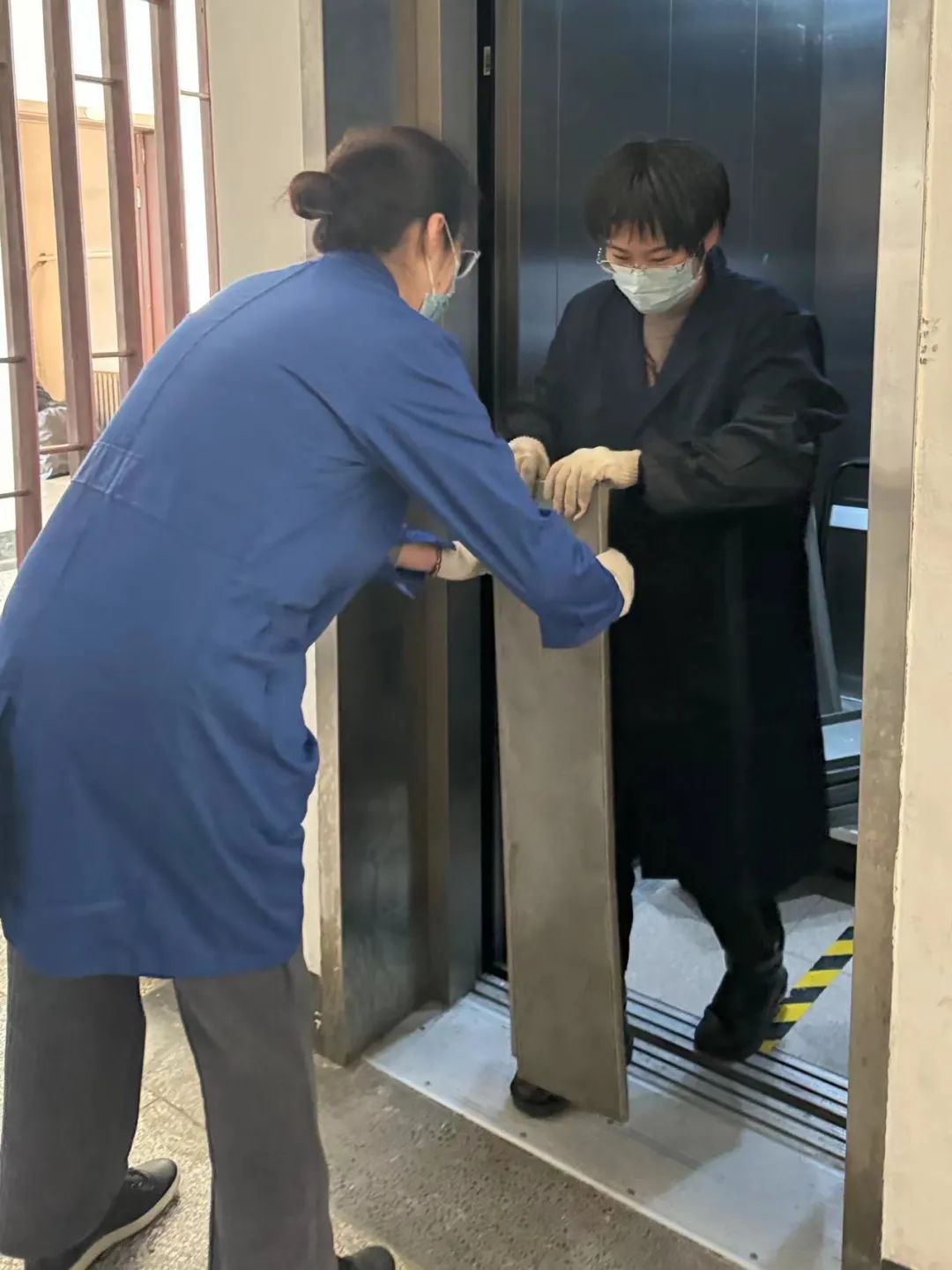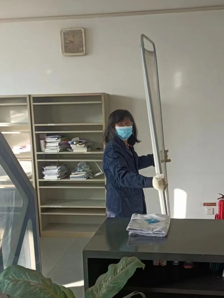 书格架找到了,如何能顺利安全摆放到位满足使用呢?连日来,馆内每天一早就将当天的任务安排发布到工作群,大家就自觉主动认领任务积极工作。全馆男教职工几人一组,手搬肩扛、抬运车拉安全顺利完成了40余组书格书架和70余个条桌的拆卸、组装和固定安置工作,对个别尺寸较大的男教工们就手把手接力一个台阶一个台阶地从一层楼爬到高一层楼。全馆女教工也不甘示弱,按照部门分成三组纷纷拎起水桶端起水盆拿起抹布打上热水对所有书格书架、个别房间电线网线及环境卫生进行清理保洁。尽管每天大家的劳动工作内容随着“战场”调整都会变化,但团结干事的热情和为同学们创造更好学习条件的师者仁心没有丝毫变化。