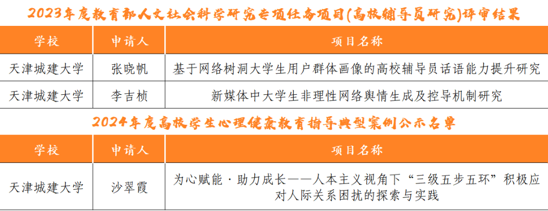 学校坚持个体发展与团队发展相结合的原则,将辅导员培训纳入干部队伍培训整体规划。通过开展新入职辅导员培训,为年轻辅导员选聘成长导师,举办辅导员工作沙龙、辅导员实务工作坊等,打通“适岗履职—骨干示范—典型孵化”全周期培养链条,全力服务辅导员队伍能力提升。2名辅导员获批教育部人文社科研究专项任务项目(高校辅导员研究)立项;1名辅导员获批教育部2024年度高校思想政治工作质量提升综合改革与精品建设项目立项,1名辅导员负责的课程入选2023年天津市高校就业创业“金课”,多名辅导员在国家安全教育教学风采展示比赛、天津市首届就业指导课程教学比赛中荣获佳绩。近3年,beat365辅导员在天津市高校思想政治工作精品项目、大中小思想政治工作专项课题等思政项目中获批立项38项;在天津市高校辅导员工作优秀案例评选、视频公开课大赛等思政活动比赛中斩获荣誉19项。