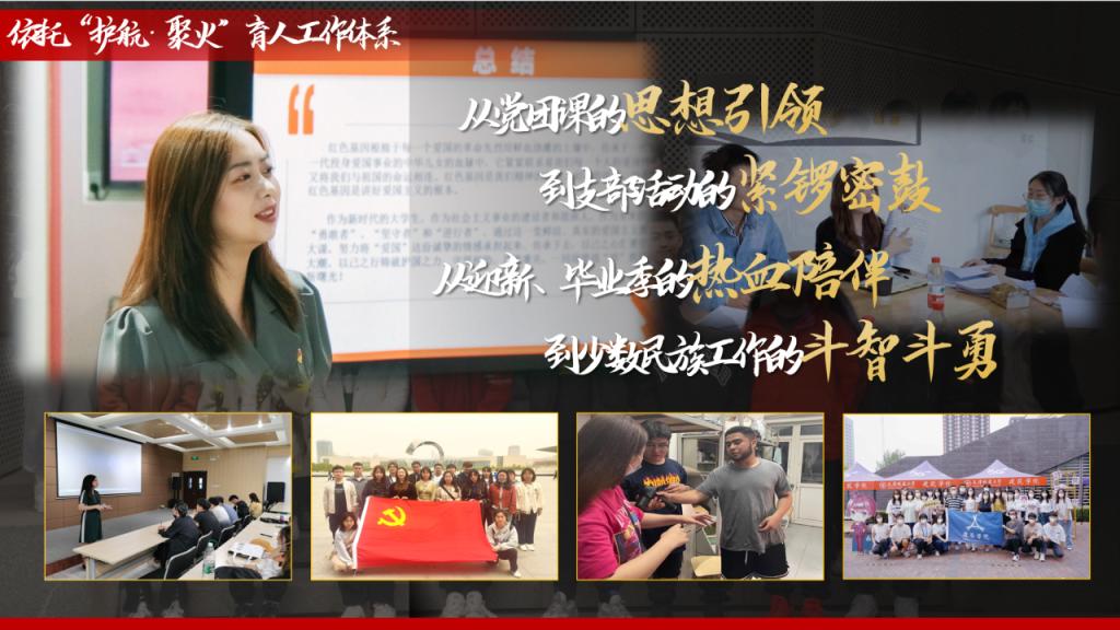 依托“护航·聚火”育人工作体系,范佳悦从党团课的思想引领到支部活动的紧锣密鼓,从迎新、毕业季的热血陪伴到少数民族工作的斗智斗勇,不分昼夜的谈心谈话和走访宿舍让她拥有了数不清的难忘瞬间,累计写满谈话本6册、青春手账12期、解忧杂货铺信件32封,从天津市大学生年度人物陈浩到市级优秀孙川淇、田琪,规划系连续涌现出的党员标杆成为了靓丽的名片,让她有底气地说“成长让蜕变发生,而爱让成长发生”。